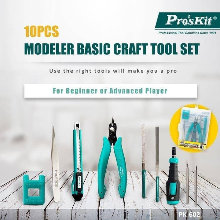 Pro’sKit PK-602 Modeler Basic Craft Tool Set – Essential Plastic Modeling & Hobby Tools Kit with Side Cutter, Files & Screwdriver