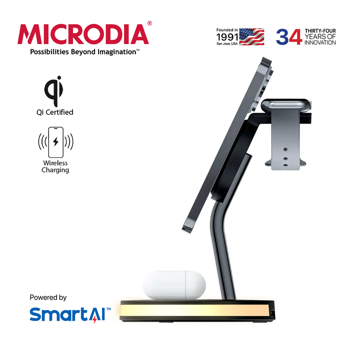 ⚡ 5-in-1 Charging Hub – Power iPhone, Watch, AirPods & more ⚙️ Fast & Efficient Output – 15W iPhone, 10W USB-A & more 🧩 Spacious & Organized – Holds multiple devices neatly 🔥 Safe Fire-Retardant Build – Made with durable V0 ABS