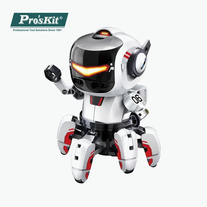 Proskit II features a flexible six-leg walking body, a 360-degree free-rotation design, and an infrared sensor that enables obstacle detection and responsive movement. Powered by the Micro:bit control board, kids can start with basic control and quickly grow into real coding skills.